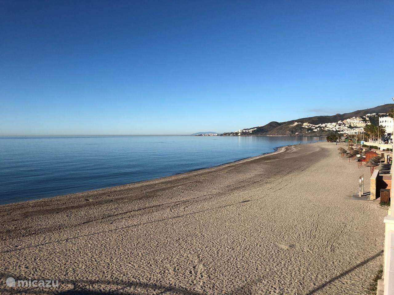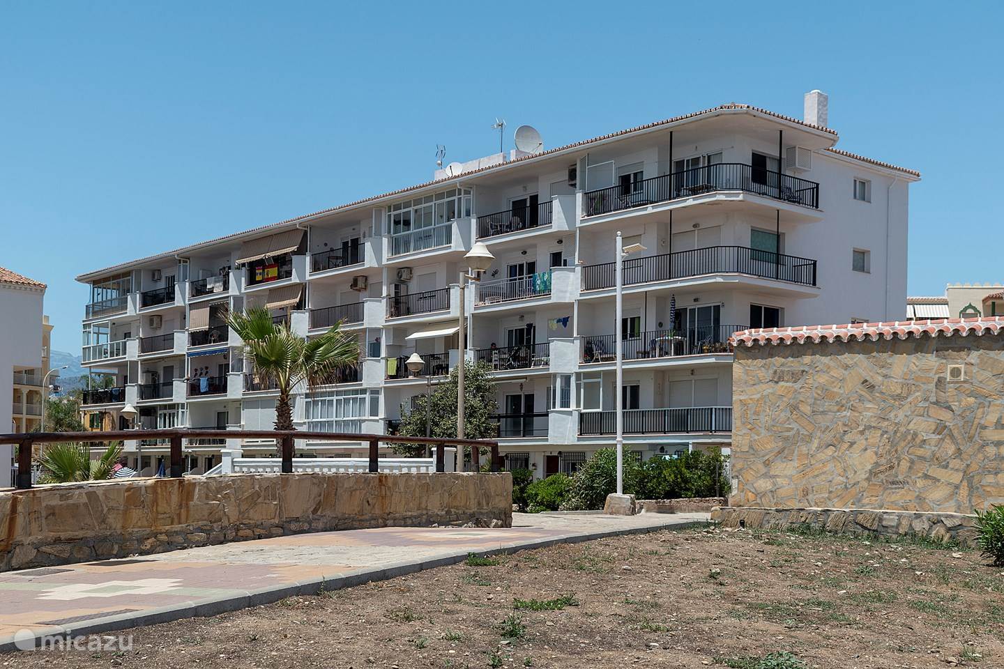 Dit appartement heeft een unieke ligging, het ligt als één van de weinige appartementen in Nerja namelijk direct aan de boulevard en het strand van Torrecilla en el Chucho. Zodra je de voordeur opendoet, kijk je recht op de zee. In bed hoor je de branding ruisen. Het is niet vreemd als je zonder verrekijker vanaf het balkon de dolfijnen ziet zwemmen. Omdat het appartement slechts van het strand wordt gescheiden door de wandelboulevard, kunnen kinderen zonder enig gevaar zelf naar het strand lopen. Vanaf het balkon kun je ze in de gaten houden.